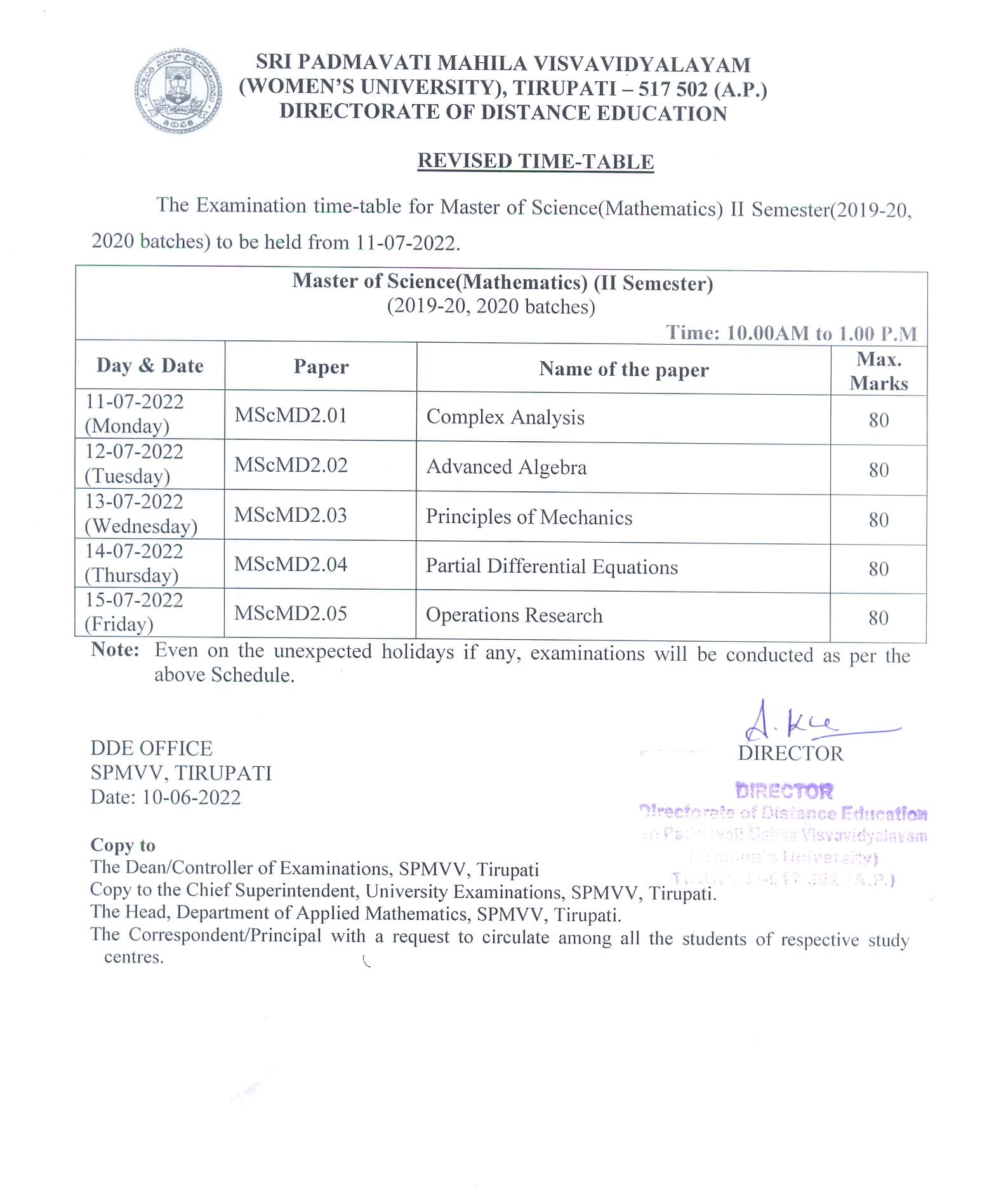 - Master of Science (Mathematics) 2nd Semester Exam Timetable